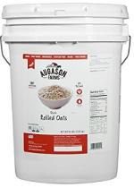 Augason Farms Long Grain White Rice bucket, pictured right,