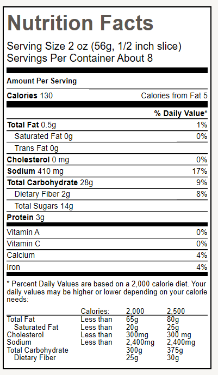 The nutrition facts chart is right. You'll find Brown Bread in a Can
