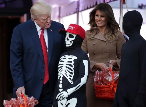 Above, President Trump surrounds himself by two very dangerous Halloween